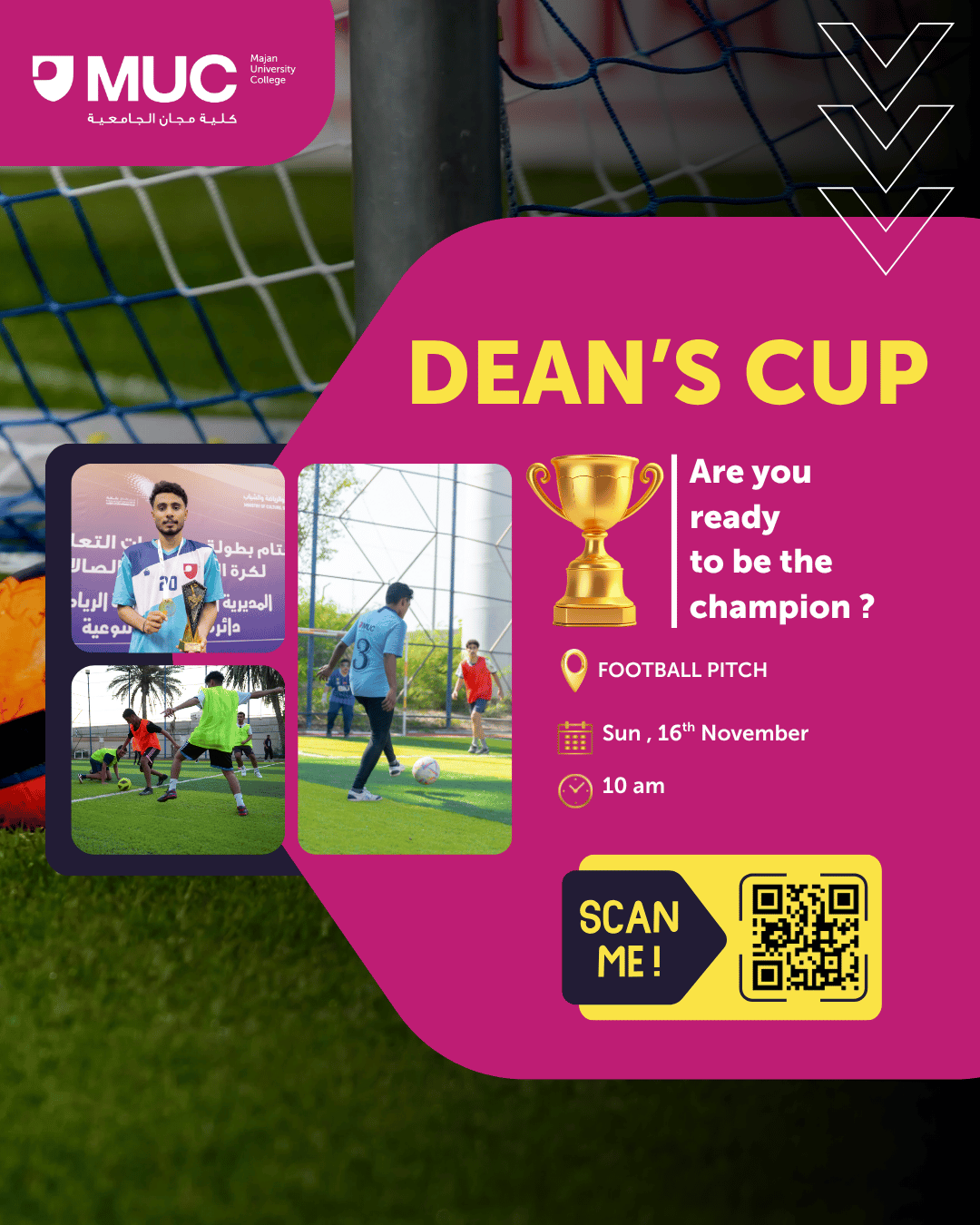 Gather your team and compete for glory in the Dean’s Cup this Sunday, 16th November at Majan University College.