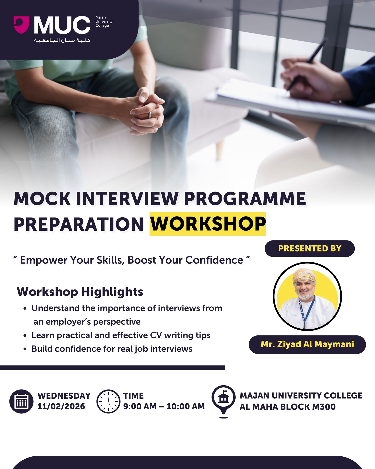 Mock Interview Programme Preparation Workshop 🧑🎓 by Student Services - Tuesday, 10 February 2026, 3:00 PM Number of replies: 0 Permalink